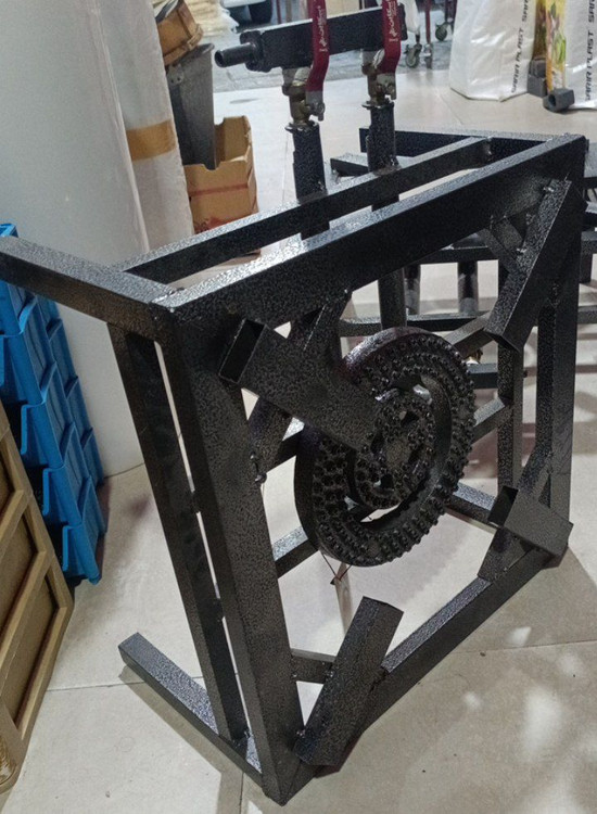 دو شیر قرمز رنگ برای کنترل جریان گاز به شعلهها در پایین آن مشاهده میشود.