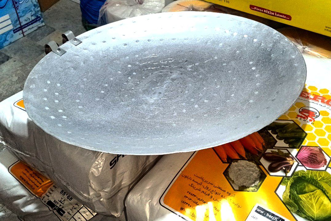 3. اندازه و شکل: اندازه های مختلفی دارد از کوچک (۲۵-۳۰ سانتی متر) برای مصارف خانگی تا بسیار بزرگ برای رستوران ها. شکل آن می تواند کاملاً مسطح یا کمی گنبدی (محدب) باشد.